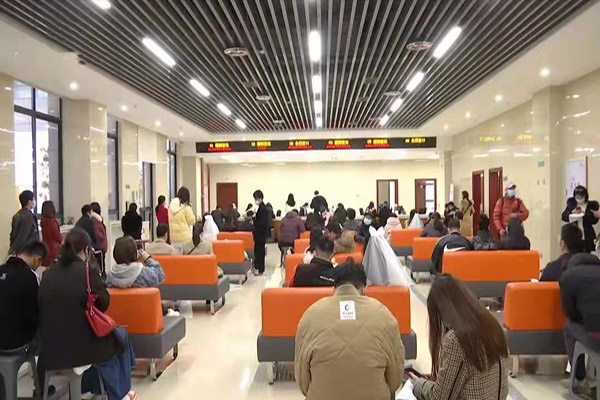 南安市民政局婚姻登记处提前筹划、多措并举,既全力满足新人们的登记需求,又避免了群众扎堆聚集,今年“2.14”、 “2.22”登记总量都超300对。